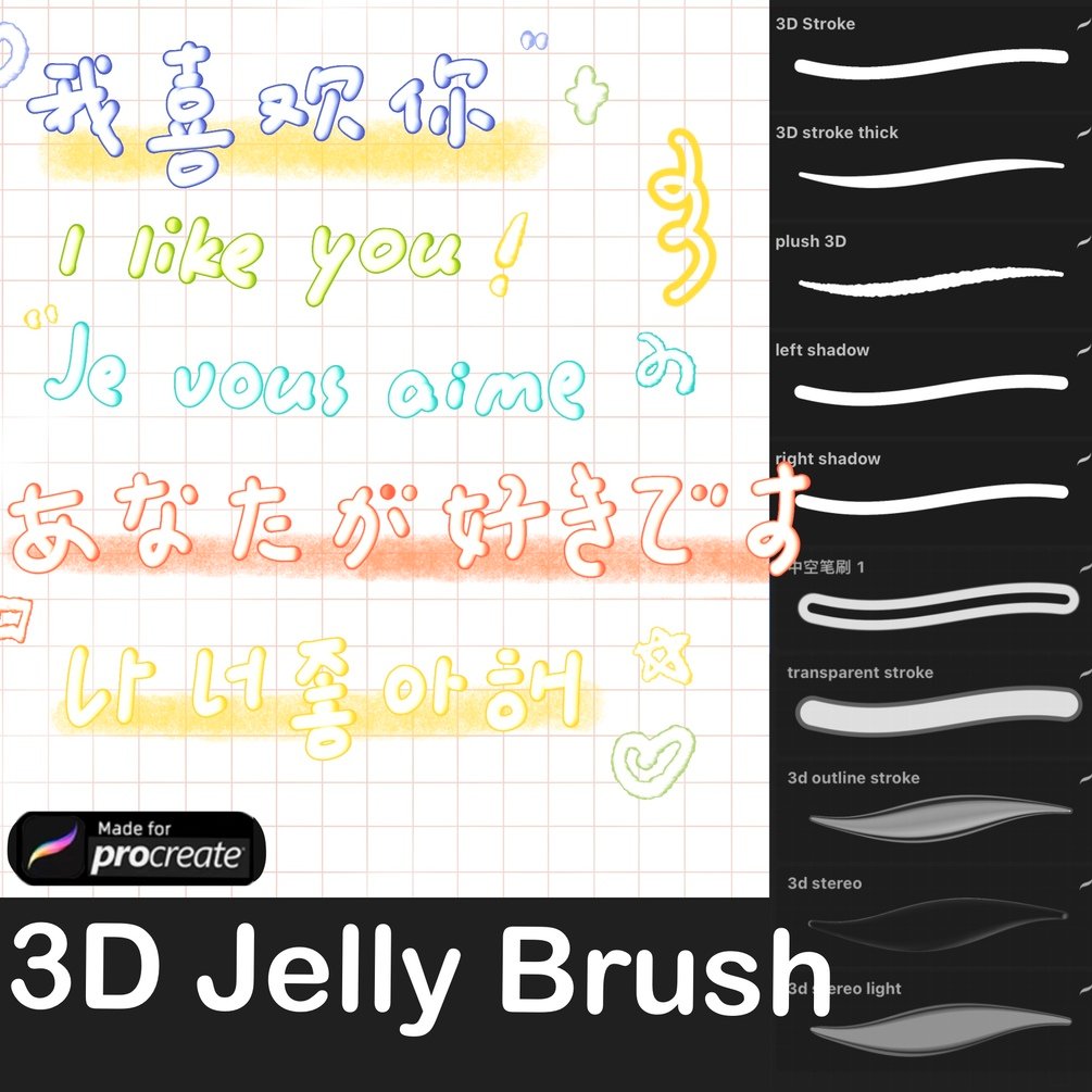 The Cute 3D Jelly Brush comes with 10 brushes I always use for design cute text pattern and stickers. Each brush is versatile and can be used for multiple purposes. If you have any questions, or problems using the brushes, please contact me: luyaleem@gmail.com and i'll help out.